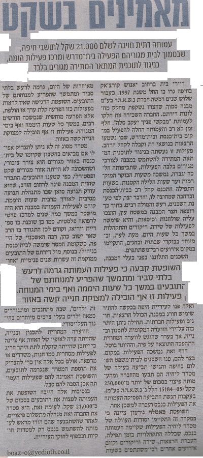 כתבה שפורסמה במקומון "ידיעות חיפה" בתאריך 27.7.07 אודות הדיון בעתירה