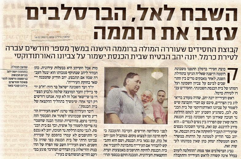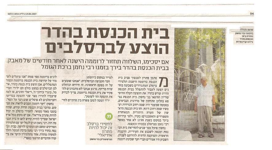 דיווח במקומון "כלבו" בתאריך 27.7.07 על נסיון של הברסלבים לשנות את