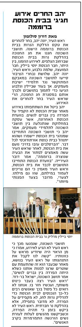 ב09.10.09 בשם "רוממה הישנה -שוב מאבקי שליטה בבית הכנסת "